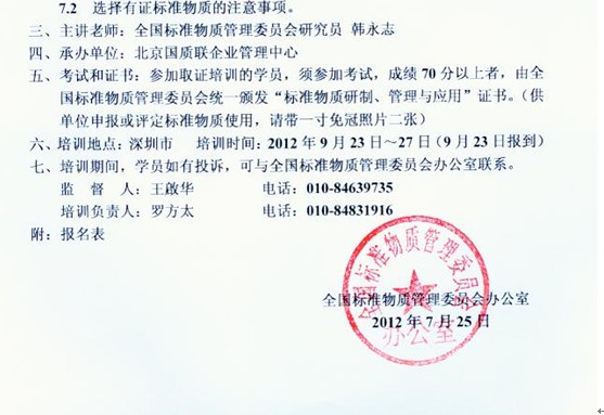关于举办“全国标准物质研制、管理与应用培训班”的通知