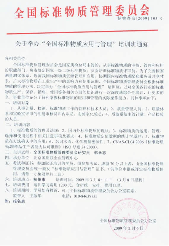 关于举办“全国标准物质应用与管理”培训班的通知