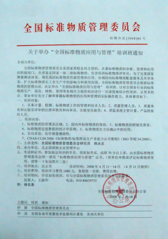 关于举办“全国标准物质应用与管理”培训班的通知