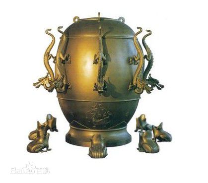 发明的。地震仪是铜铸的,形状像一个酒樽,四周有八个龙头,龙头对着东、南、西、北、东南、西南、东北、西北八个方向。龙嘴是活动的,各自都衔着一颗小铜球,每一个龙头下面,有一个张大了嘴的铜蛤蟆,仪器的内部中央有一根铜质“悬垂摆”,柱旁有八条通道,称为“八道,还有巧妙的机关。它比欧洲创造的类似的地震仪早了1700多年。可惜的是东汉地动仪早已失传,我们看到的地动仪都是后人根据史籍复原的。